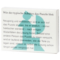 Artikel-Nr: 375102662Verzwicktes Holz-Legepuzzle für Ihr Sternzeichen - auf der Schachtelrückseite ist lustig beschrieben, wie jeder Sternzeichen-Typ seine Aufgabe lösen wird! Neun Teile! Achtung! Nicht geeignet für Kinder unter 36 Monaten.