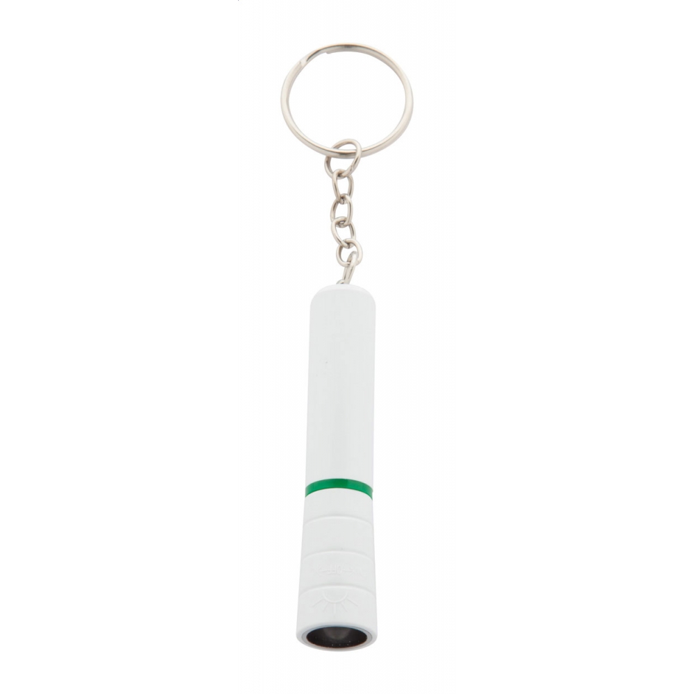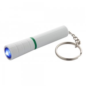 Artikel-Nr: AND854071-07Mini-Taschenlampe aus Kunststoff mit weißem LED-Licht und Metall-Schlüsselring. Inkl. Knopfzellenbatterie.