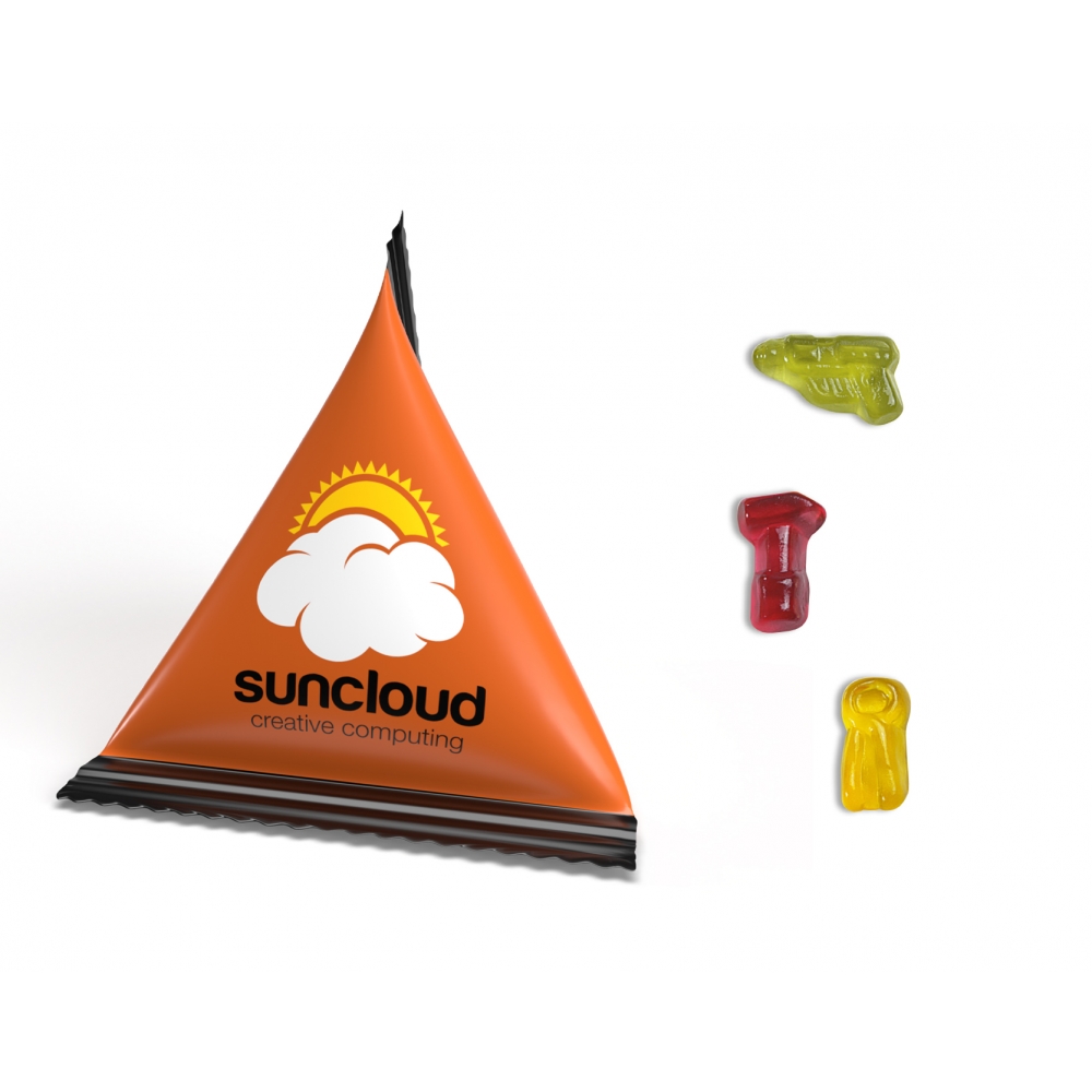 Artikel-Nr: MGN01006-0406Leckeres Fruchtgummi, fruchtig im Geschmack, verpackt in einem individuell bedruckten Tetraeder – der sofort ins Auge fällt. Die außergewöhnliche Verpackungsform bietet viel Platz für Ihre Markenbotschaft und sorgt für einen hohen Wiedererkennungswert.