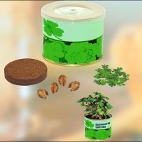Inhalt:Kleeblatt-Streufigürchen, Erdquelltablette, echte Glückskleezwiebelchen