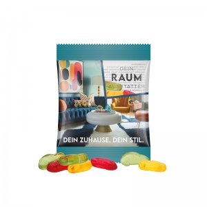 Artikel-Nr: PUC1021.00375Trolli Fruchtgummi in Tüte aus transparenter Folie, individuell bedruckt. Inhalt: Trolli Fruchtgummi Autos, in Premium Qualität mit 10 % Fruchtsaftanteil, bunt gemischt, 15 g