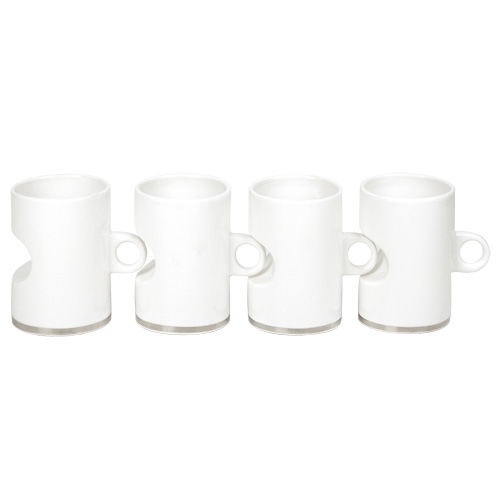 Diese Tassen greifen symbolisch ineinander und sind mit einem Silberrand verziert. Maße: 7 x 10 cm
