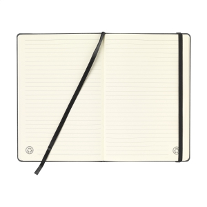 Artikel-Nr: CLP389098WoW! A5-Notizbuch mit einem Hardcover aus recycelten Lederabfällen. Das Notizbuch umfasst ca. 96 Blatt/192 Seiten cremefarbenes, liniertes, FSC Mix zertifiziertes Papier (80 g / m²). Mit gebundenem Buchrücken, praktischem Verschlussgummi und seidener Leselitze. Wird einzeln in einem Kraftkarton geliefert.