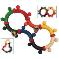 Mit zwei Glöckchen. Den Greifling kann man verbiegen. Die Holzperlen massieren dabei die Handflächen. Achtung! Nicht geeignet für Kinder unter 36 Monaten.