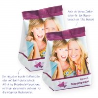 Artikel-Nr: 49430330Klein, aber oho: Der mit einer unserer Müslimischungen gefüllte Mini-Bodenbeutel transportiert eine stattliche Füllmenge von 120 Gramm und bringt auf den Beutel gedruckte, individuelle Motive äußerst geschmackvoll zur Geltung. Als Streuwerbemittel oder Give-away bei persönlichen Kundenkontakten eignet er sich für verschiedenste Branchen und Anlässe, z.B. im Medienbereich für Kampagnen rund um Frühstücksprogramme.
