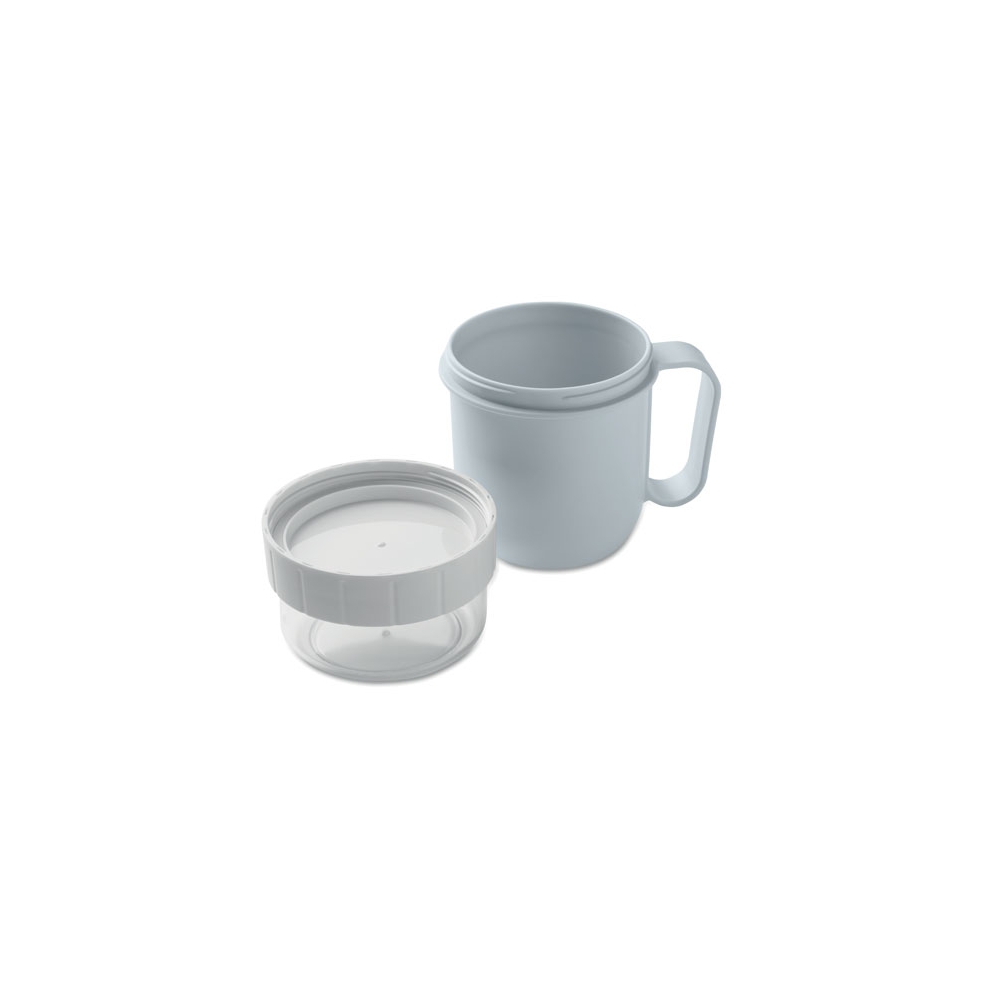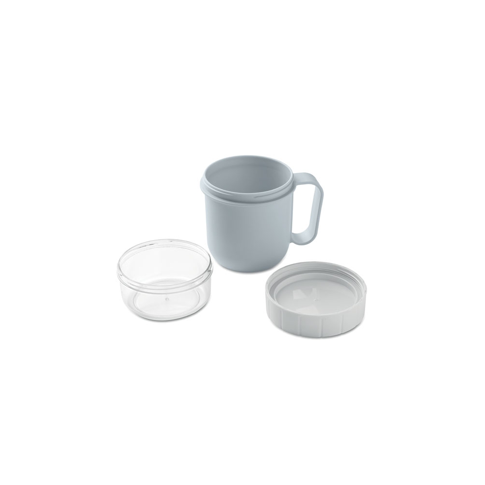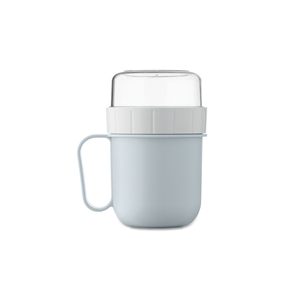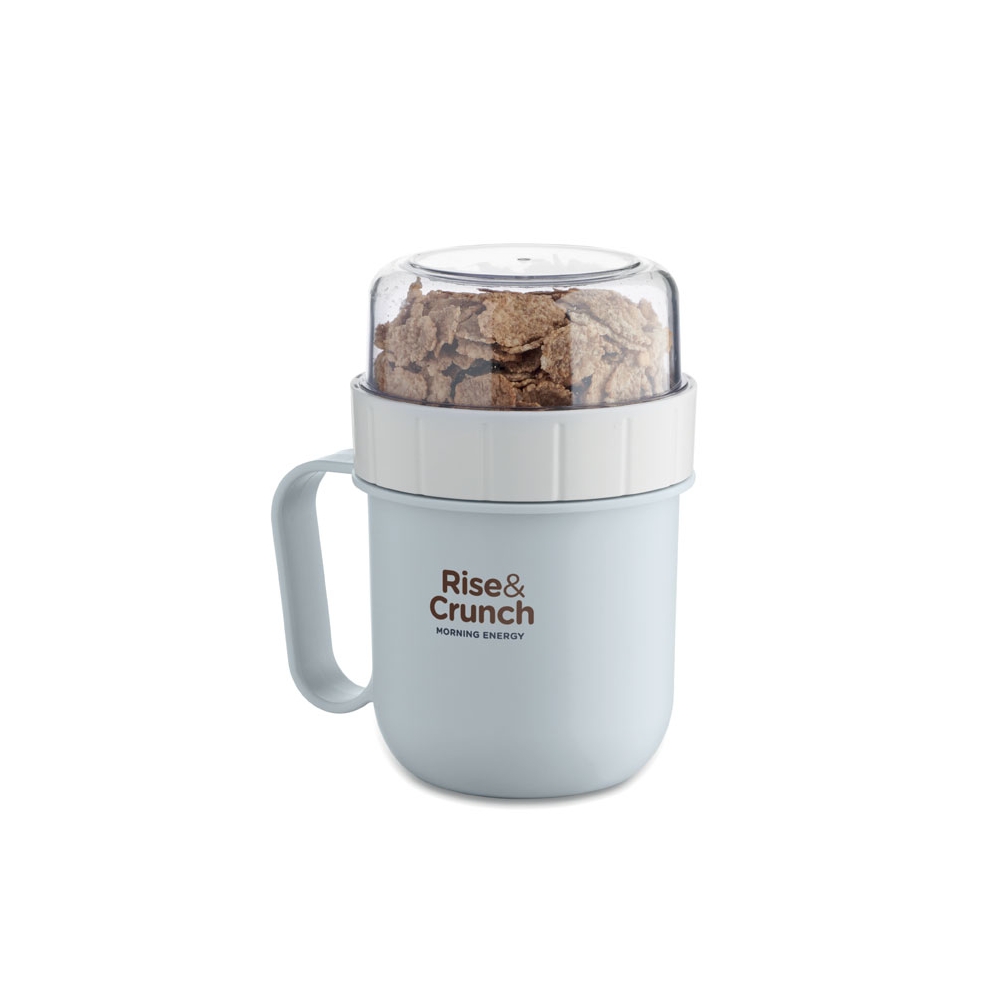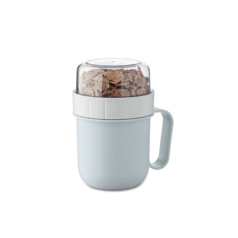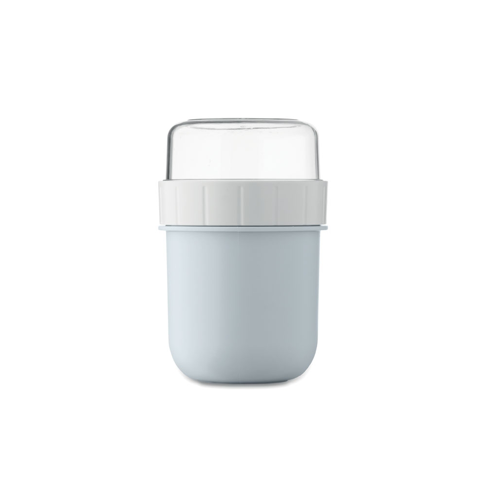 Artikel-Nr: OCBMO2679-66Brunch- oder Müslibecher für unterwegs. 2 PP-Behälter, um die Zutaten getrennt aufzubewahren. Deckel aus PS. Füllmenge: 450 ml und 160 ml. Auslaufsicher.