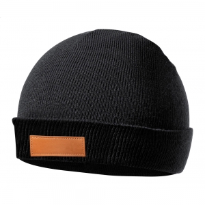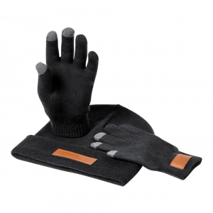 Artikel-Nr: AND722689-10Gestrickte Wintermütze und Touchscreen-Handschuhe aus Acryl mit bedruckbaren Kunstlederlabel. Erwachsenen-Einheitsgröße.