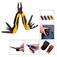 Artikel-Nr: 57382140GB-SWMulti-Werkzeug mit 11 Funktionen. Mit diesem Multi-Tool haben Sie stets das richtige Werkzeug zur Hand. Für kleinere Reparaturarbeiten im Haushalt oder auch als Begleiter auf Reisen, beim Camping, auf Ausflügen und anderen Outdoor-Aktivitäten ist es bestens geeignet. Hinter den ABS-Griffschalen mit Aluminiumeinsätzen sind zahlreiche praktische Werkzeuge aus schwarzem rostfreiem Edelstahl 2Cr13 untergebracht: Säge, Schlitz-Schraubendreher (3 und 5 mm), Phillips-Schraubendreher, Messer (Klingenlänge 6,0 cm), Dosenöffner, Kronkorken-Heber, Ahle, Metallfeile, Zange mit Seitenschneider. In der Handhabung erweist sich das Multi-Tool als sehr sicher, da alle Werkzeuge im geöffneten Zustand über den Verriegelungsschutz arretiert werden. Nylon-Gürteltasche inkl.