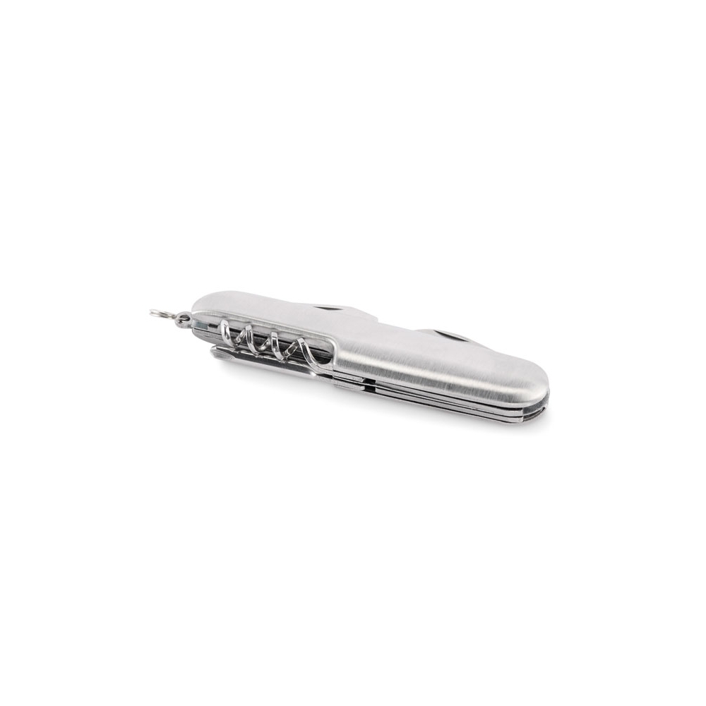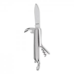Artikel-Nr: OCBMO2531-14Multi-Tool-Taschenmesser aus recyceltem Aluminium. 5 Funktionen: Große Klinge, Kapselheber, Schraubendreher, Korkenzieher und Dosenöffner.