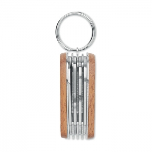 Artikel-Nr: OCBMO2298-40Multitool-Taschenmesser aus Edelstahl mit Griff aus Akazienholz. 7 Funktionen: Kapselheber, Messer, Dosenöffner, Feile, Schraubendreher, Schlüsselring und 1 LED-Licht. Inkl. 3 Knopfzellen.