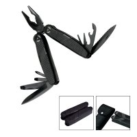 Artikel-Nr: 57383200SW-SWMulti-Werkzeug mit 11 Funktionen. Dieses Tool wurde speziell für den Heim- und Profihandwerker entwickelt. Die Griffe sind aus strukturiertem, rutschfestem Material und garantieren einen sicheren Halt. Alle Werkzeuge sind aus schwarzem rostfreiem Edelstahl 420 gefertigt. Folgende Werkzeuge bietet Ihnen dieses Tool: Zange mit Seitenschneider, Messer (Klingenlänge 6,5 cm), Säge, Phillips-Schraubendreher, 2x Schlitz-Schraubendreher (3 / 4 mm), Dosenöffner, Kronkorken-Heber, Metallfeile und Ahle. Nylon-Gürteltasche inkl.