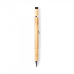 Artikel-Nr: KTO11581000000Natur Linie Multifunktionskugelschreiber aus Bambus. Drehmechanik und blaue Tinte, mit Metallclip und verchromtem Zubehör. Funktionen: Kugelschreiber, Stylus, Schlitz- und Kreuzschlitzschraubendreher, Wasserwaage und Lineal.