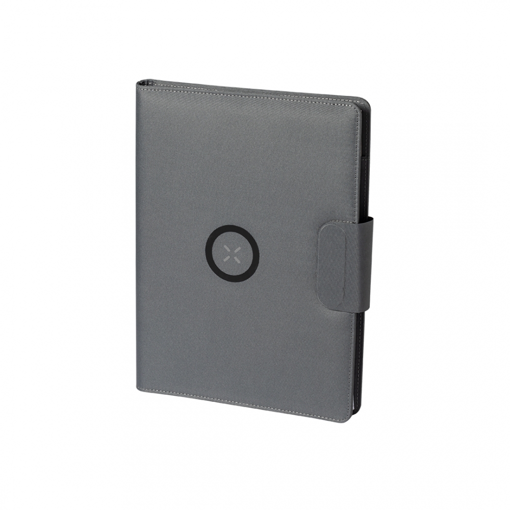 Artikel-Nr: KTO11465008000Multifunktionaler Ordner / Notizblock aus 300D RPET-Polyester, hergestellt aus recyceltem Kunststoff, der die Wiederverwendung von Kunststoffabfällen fördert und zur Nachhaltigkeit unseres Planeten beiträgt. Mit Magnetverschluss und RPET-Etikett im Inneren. In die Hülle integriertes kabelloses 10-W-Ladegerät mit Magnetverschluss, um das Gerät während des Ladens zu benutzen, und mit Klebering, kompatibel mit allen Geräten mit Magsafe- und Qi-Technologie. Integrierter Akku mit 5.000 mAh Ladekapazität, mit Typ-C-Eingangs- / Ausgangsanschluss und LED-Ladestatusanzeige, inklusive Kabel. Innen mit Smartphone-Halterung und verschiedenen Kartenfächern, einschließlich Stifthalter und A4-Notizblock mit 20 Blatt Einstreifen-Layout. Präsentiert in einer attraktiven Designbox. Alle unsere externen Zusatzbatterien haben eine reale Kapazität und bestehen aus nicht recycelten Batterien der Klasse A mit einer Lebensdauer von mindestens 500 Ladezyklen, die den CE-Vorschriften entsprechen. Darüber hinaus werden sie gemäß den RoHS-Normen und unter Einhaltung der folgenden Sicherheitsanforderungen hergestellt: Überladungsschutzsystem der Powerbank. Vollständiges Entladeschutzsystem, das die Lebensdauer der Powerbank erhöht. Blockiersystem zur Vermeidung von Kurzschlüssen. Konstantes Ladetransfersystem, entsprechend der Kapazität des Zielgeräts.