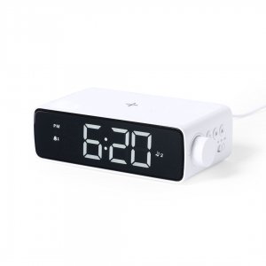 Artikel-Nr: KTO11148000000Multifunktionsuhr im eleganten weißen Design mit integriertem 10W Wireless Charger und integrierter LED-Lampe. Mit Datums- / Uhrzeitfunktion, Wecker und 36-LED-Lampe mit einstellbarer Lichtstärke. USB-Anschluss, mit mitgeliefertem 100 cm Typ-C-Kabel und Knopfbatterie Notstrom (im Lieferumfang enthalten) Kompatibel mit Geräten mit kabelloser Ladetechnologie Verpackt in einer attraktiven Designbox. In Übereinstimmung mit den Sicherheitsanforderungen:Überhitzungsschutzsystem.Überlastschutzsystem.