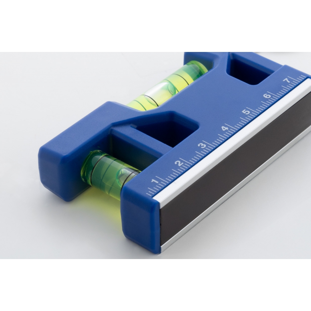 Artikel-Nr: AND874036-06Multifunktionaler Schlüsselanhänger aus recyceltem ABS mit Metallring, Lineal, Magnet und zwei Wasserwaagen.