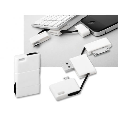Multi-Ladegerät aus Kunststoff. USB-Anschluss 2.0, iPhone 3/4, Micro USB.