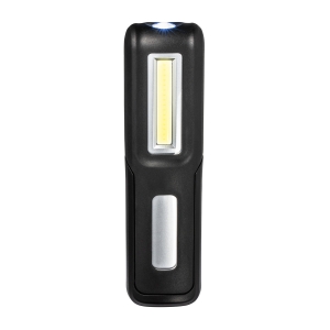 Artikel-Nr: RFS52373-BK-CDie Multifunktionstaschenlampe für Haushalt und Auto hat einen eingebauten Akku (1200mA). Die Ladestandsanzeige verrät, wie viel Power noch vorhanden ist. Sie verfügt über ein seitliches COB Licht (3 Watt, 160 Lumen) und eine LED-Leuchte vorne (50 Lumen).