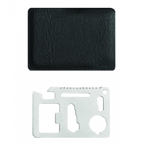 Artikel-Nr: INP56-0381000Multifunktionskarte POCKET CARD: min. 11 Funktionen wie z. B. Dosenöffner, Messer, Schraubendreher, Lineal, Kapselheber, 4-Punkt-Schlüssel für verschiedene Muttern und Schraubenköpfe, im PU-Etui