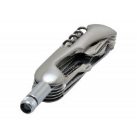Artikel-Nr: 688ECO164Messer aus rostfreiem Edelstahl mit 12 Funktionen: Messer, Korkenzieher, Nagelpfleger, Kapselheber, flacher Schraubenzieher, Dosenöffner, Schere, Kreuzschlitzschraubendreher, Dorn, Einfädelhilfe, Säge, LED-Lampe (inkl. 4 Batterien typ LR621 (1,5 V).