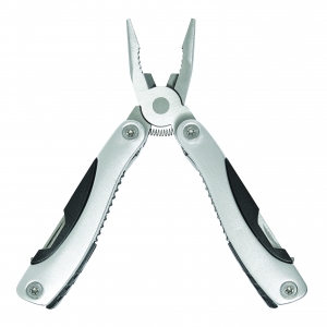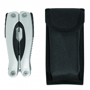 Artikel-Nr: INP56-0381056Multifunktionswerkzeug BIG PLIERS: mit gefederter, ausklappbarer Kombizange, in den Aluminium beschichteten Griffen integrierte Edelstahl-Werkzeuge: Säge, Feile, Fischermesser + Maßstab (Inch), Dosenöffner und Kapselheber, Messerklinge, Kreuzschlitzschraubendreher, kleiner und großer Schraubendreher, in Nylon-Tasche mit Klettverschluss und Gürtelschlaufe auf der Rückseite, in Box