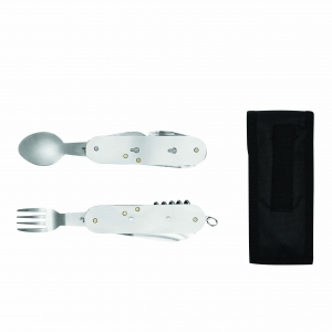 Artikel-Nr: INP56-0301017Edelstahl-Multifunktionswerkzeug WILDLIFE: mit ausklappbarem Messer, Flaschen- und Dosenöffner, Entschupper und Korkenzieher, ausziehbarer Gabel und Löffel, mit Schlüsselring, in Tasche mit integrierter Gürtelschlaufe und Klettverschluss – ideal für Camping, Picknick und Outdooraktivitäten, in Box