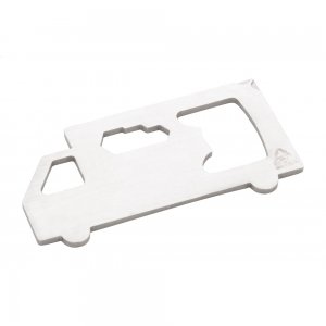 Artikel-Nr: AND808264Lkw-förmiges Multifunktionswerkzeug aus recyceltem Edelstahl mit Flaschenöffner, Kreuzschlitzschraubendreher und 3 flachen Schraubenschlüsseln.