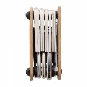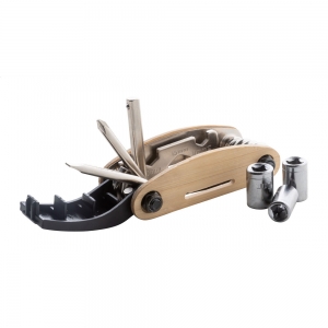 Artikel-Nr: AND874034Multitool aus Edelstahl mit Bambusgriff und 14 Funktionen. Enthält Schlitz- und Kreuzschlitzschraubendreher, 5 Inbusschlüssel, 3 Inbuseinsätze mit Verlängerungsstange und 4 Gabelschlüssel.
