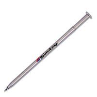 Artikel-Nr: P136Silberfarbiger Retro-Kugelschreiber in Form eines Nagels. Blauschreibend. Ab 5.500 Stück auch in eigener PMS-Farbe erhältlich, Lieferzeit dann ca. 10-12 Wochen. Maße: 153 x 8mm. Farbe/n: Silber. Werbeanbringung: 60 x 16 mm.