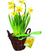 Artikel-Nr: 449001202Verschenken Sie lebende Narzissen-Pflanzen. Rechtzeitig zu Ostern werden die gelb leuchtenden Blüten offen sein. Im schönen Naturkorb ein echter Hingucker und sympathischer Überbringer Ihrer Werbebotschaft. Das Standardmotiv der Anhängekarte bietet Platz für Ihren Werbeeindruck ab 250 Stück. Eine eigene Gestaltung ist ab 250 Stück möglich.