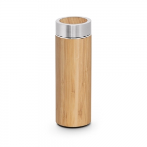 Artikel-Nr: PST94683-160Isolierkanne aus Bambus und Edelstahl (90% recycelt) (430 mL), doppelwandig, vakuumisoliert und mit Teesieb. Geliefert in einer Geschenkschachtel. Da das Produkt aus natürlichen Materialien hergestellt wird, können Farbe des Produkts sowie das Druckergebnis von Produkt zu Produkt unterschiedlich sein. ø69 x 207 mm | Schachtel: 72 x 210 x 72 mm