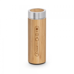 Artikel-Nr: PST94683-160Isolierkanne aus Bambus und Edelstahl (90% recycelt) (430 mL), doppelwandig, vakuumisoliert und mit Teesieb. Geliefert in einer Geschenkschachtel. Da das Produkt aus natürlichen Materialien hergestellt wird, können Farbe des Produkts sowie das Druckergebnis von Produkt zu Produkt unterschiedlich sein. ø69 x 207 mm | Schachtel: 72 x 210 x 72 mm