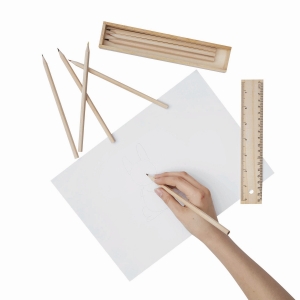 Artikel-Nr: INP56-0504076Naturholz-Buntstifte STRAIGHT, 8 Stück, angespitzt, im Holzetui mit Lineal (19 cm) als Deckel