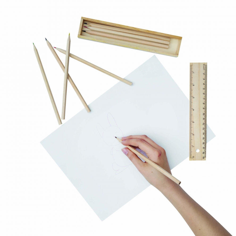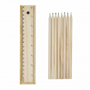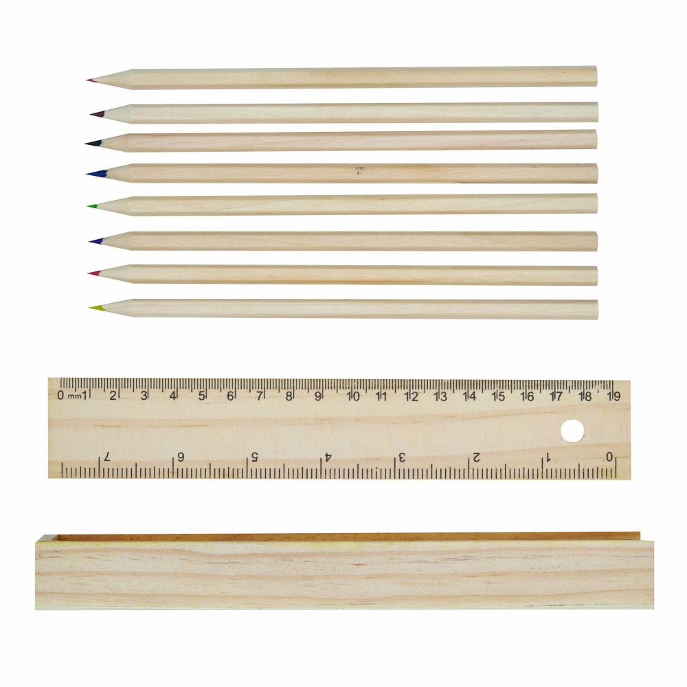 Artikel-Nr: INP56-0504076Naturholz-Buntstifte STRAIGHT, 8 Stück, angespitzt, im Holzetui mit Lineal (19 cm) als Deckel