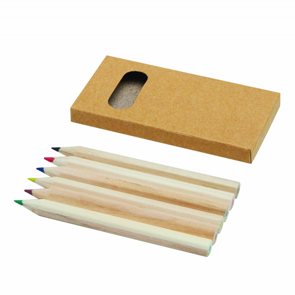 Artikel-Nr: INP56-0504040Kurze Naturholz-Buntstifte TINY TREE, 6 Stück, angespitzt, in Box