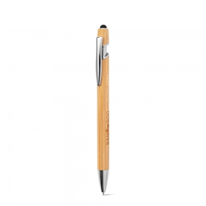 Artikel-Nr: PST91986-160Bambus-Kugelschreiber mit verchromten Aluminiumdetails. Er hat einen Clip, eine Touch-Spitze an der Oberseite und blauschreibende Mine. Da das Produkt aus natürlichen Materialien hergestellt wird, können Farbe des Produkts sowie das Druckergebnis von Produkt zu Produkt unterschiedlich sein. ø11 x 150 mm
