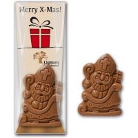 Artikel-Nr: W567ZS029Nikolaus im Schlitten aus feinster Edelvollmilchschokolade - von Hand geschöpft. Die Karte kann