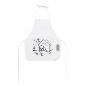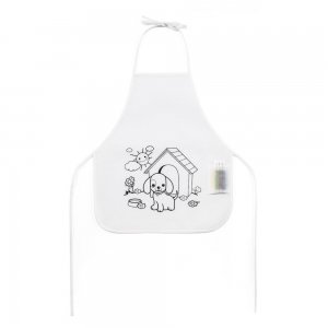 Artikel-Nr: PST99834-106Kinderschürze aus Non-Woven (80 g / m²) zum Ausmalen. Mit vorbedrucktem Motiv, einer Seitentasche, anpassbaren Bändern und 4 Filzstiften. 380 x 430 mm