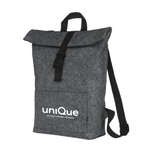 Artikel-Nr: CLP126592WoW! Robuster, praktischer "Roll-Top"-Rucksack aus stabilem RPET Filz. Der Rucksack hat ein geräumiges Innenfach und eine Tasche vorne. Mit Trageschlaufe, Rollverschluss und praktischem Klicksystem. GRS-zertifiziert. Gesamtes recyceltes Material: 80%. Fassungsvermögen ca.15 Liter.