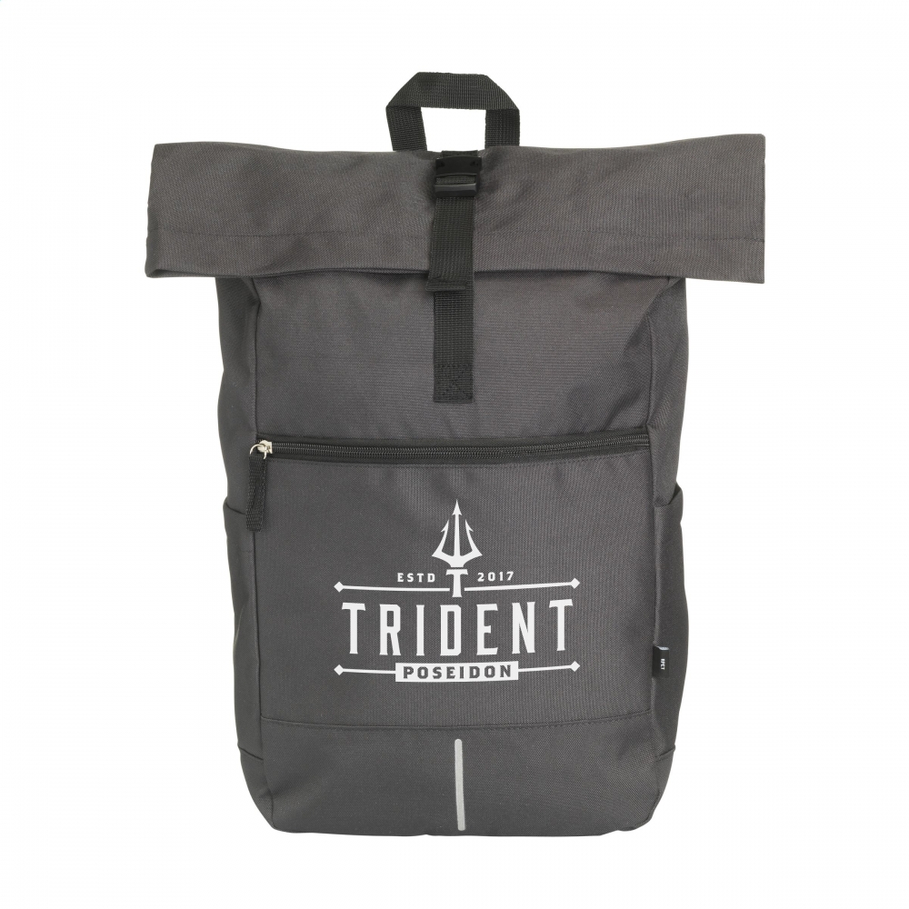 Artikel-Nr: CLP631190WoW! Praktischer, robuster und wasserabweisender "Roll-Top"-Rucksack aus RPET-Polyester. Der Rucksack hat ein großes Innenfach mit speziellem Laptopfach (bis zu 15,6 Zoll). Reißverschlusstasche auf der Vorderseite mit einem reflektierenden Akzent darunter (was die Sichtbarkeit im Dunkeln verbessert). Mit 2 Seitentaschen, Schaumrücken und gepolsterten, verstellbaren Schultergurten für mehr Tragekomfort, Trageschlaufe und Rollverschluss mit praktischem Klicksystem oben. Die perfekte Tasche für den täglichen Gebrauch. Fassungsvermögen: ca. 20 Liter.