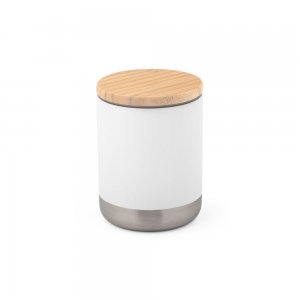 Artikel-Nr: PST94661-106Isolierbecher aus Edelstahl (36% recycelt) (370 mL), doppelwandig und vakuumisoliert mit Deckel aus Bambus und Silikondichtung. Der Reisebecher hält Getränke bis zu 5 1/2 Stunden heiß und bis zu 24 Stunden kalt. Die Beschichtung auf der Oberfläche gewährt diesem Artikel mehr Resistenz und Haltbarkeit. Geliefert in einer Geschenkschachtel aus Kraftpapier. Da das Produkt aus natürlichen Materialien hergestellt wird, können Farbe des Produkts sowie das Druckergebnis von Produkt zu Produkt unterschiedlich sein. ø80 x 106 mm