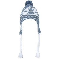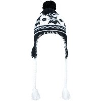 Norweger Strickmütze mit Pompon, langgezogenen Ohrenklappen und Flechtzöpfen mit Quasten