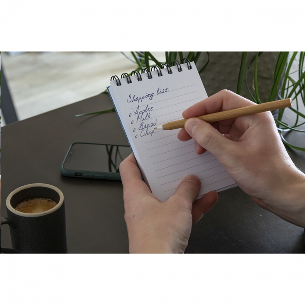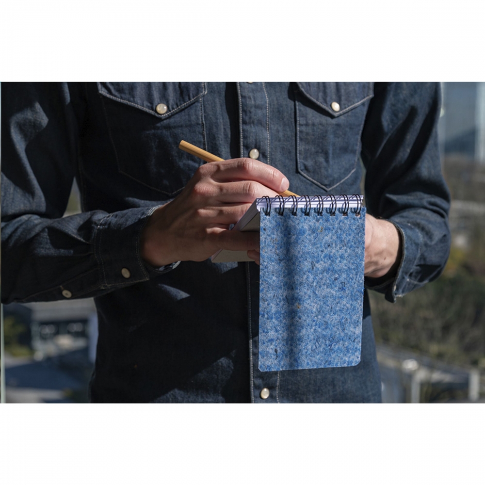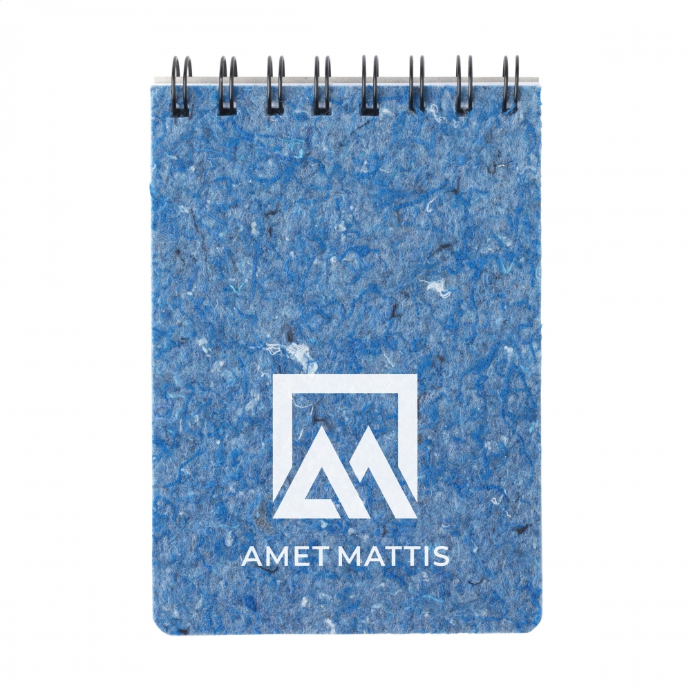 Artikel-Nr: CLPW12230WoW! A6-Notizbuch mit Spiralbindung, ca. 96 Blatt/192 Seiten liniertem, holzfreiem Offset-Papier (90 g / m²) und Umschlag aus upgecycelten Textilien. Alte Textilien werden gesammelt und zu Filz verarbeitet. Filz ist ein Vliesstoff, der durch Komprimieren der Fasern mit Hitze, Feuchtigkeit und Druck hergestellt wird. Bei sozialen Arbeitsplätzen werden die laserschneiden die Blätter und befestigen sie an den Notizbüchern. Die Mitarbeiter der sozialen Einrichtungen schneiden die Blätter mit dem Laser aus und befestigen sie an den Notizbüchern. In diesem Notizbuch können Sie alle Ihre Ideen notieren. Optional: Einzeln in einem Kraftkarton geliefert.