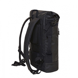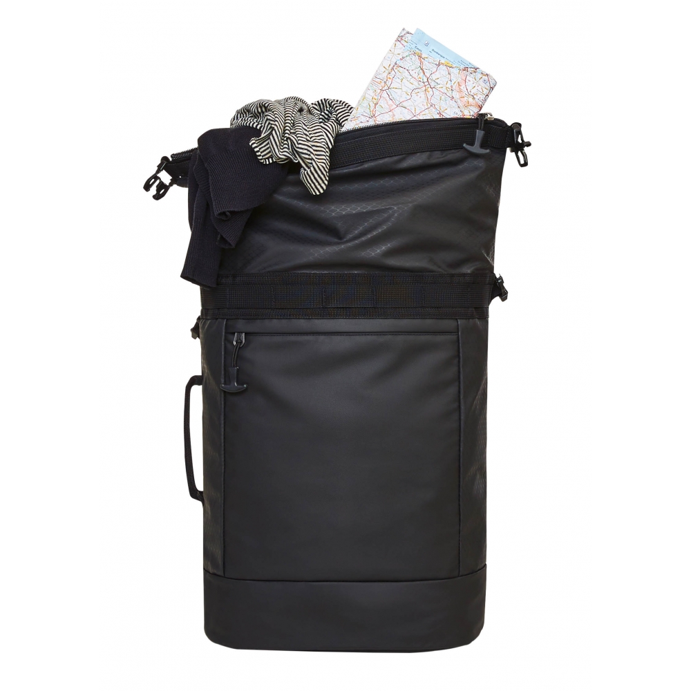 Artikel-Nr: HLF1818034-742Aufwändig gearbeiteter Rolltop-Rucksack; Reißverschluss-Hauptfach mit seitlichen Steckverschlüssen; gepolstertes Einsteckfach innen; große Reißverschluss-Vortasche; Funktions-Schaufenband auf der Front; rückseitig Befestigungsschlaufe für Trolley-Gestänge; verstecktes Reißverschluss-Fach; gepolstertes Tragesystem mit höhenverstellbarem Brustgurt; sowohl seitlicher als auch rückseitiger Handgriff
