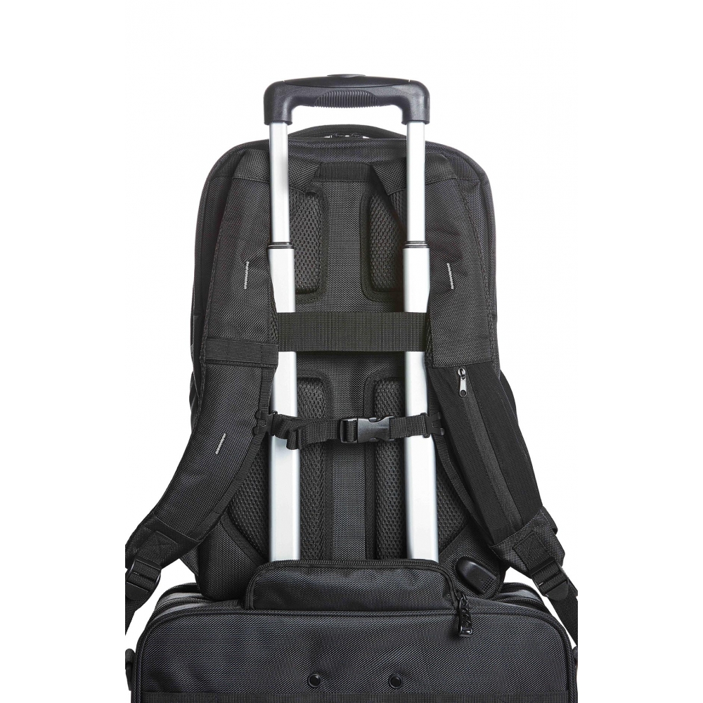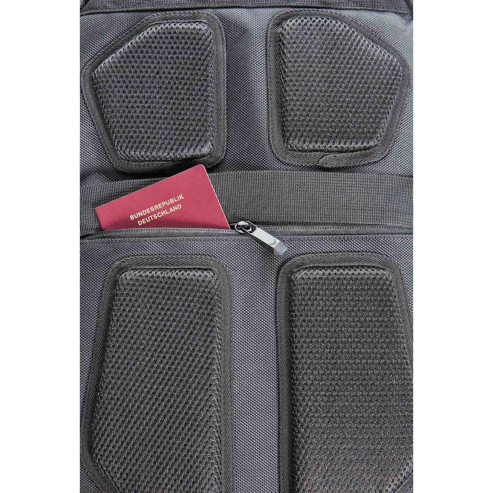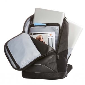 Artikel-Nr: HLF1815008-1Aufwändig gearbeiteter Businessrucksack mit Reflex-Besatz und LED-Fahrradlicht-Befestigungsmöglichkeit; großes Hauptfach mit 2-Wege-Reißverschluss, Notebookfach für 15" Notebooks, gepolsterter Reißverschluss-Innentasche und flacher Reißverschluss-Tasche; großes 2-Wege-Reißverschluss-Fach mit Veloursfutter, geeignet für 17" Notebook; Reißverschluss-Tasche auf der Front; seitlich zwei elastische Netzfächer, zwei versteckte Reißverschluss-Einsteckfächer; rückseitige Befestigungsschlaufe für Trolley-Gestänge, verstecktes Reißverschluss-Fach, USB-Durchlass mit integriertem Verbindungskabel; umfänglich gepolstertes Tragesystem mit abnehmbarem, verstellbarem und elastischem Brustgurt, elastischen Schlaufen für z. B. Brillenbügel, sowie elastischem Reißverschluss-Netzfach; gepolsterter Handgriff; Reißverschlusschieber (auf der Front) verfügbar in den abgebildeten Farben.