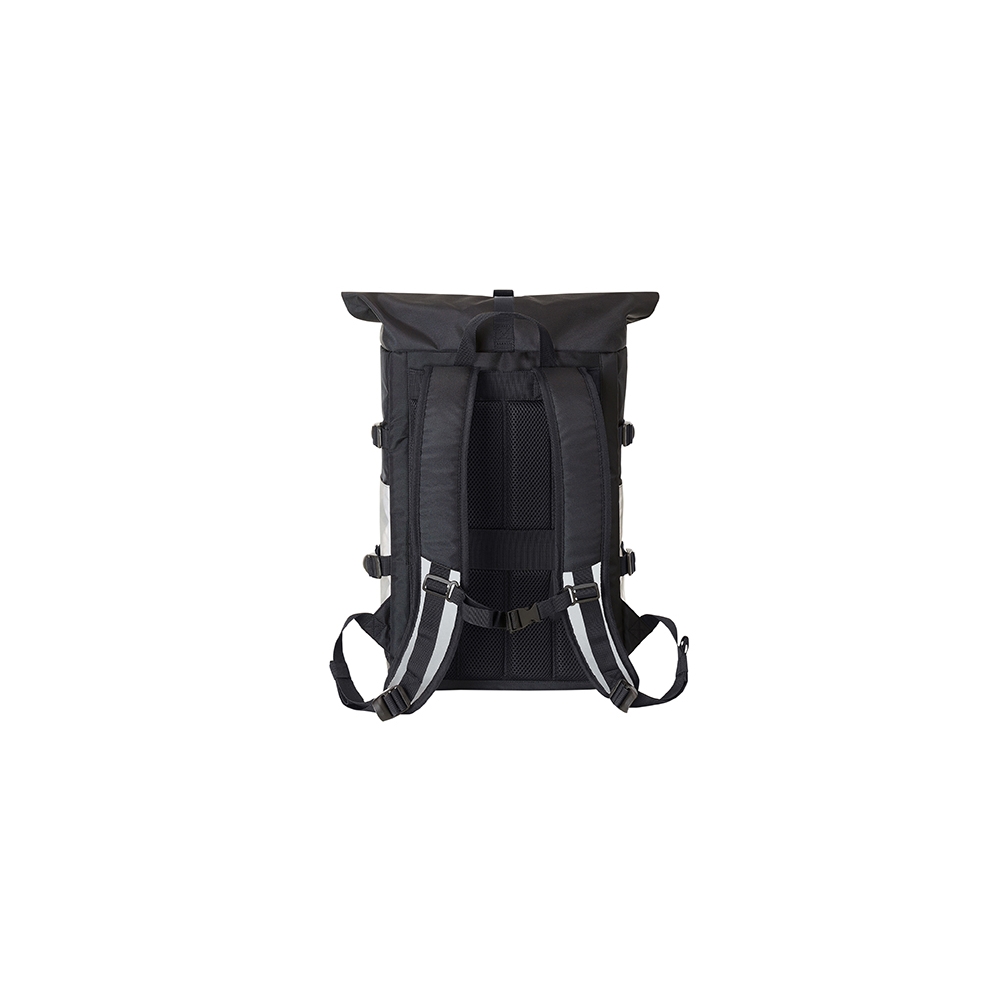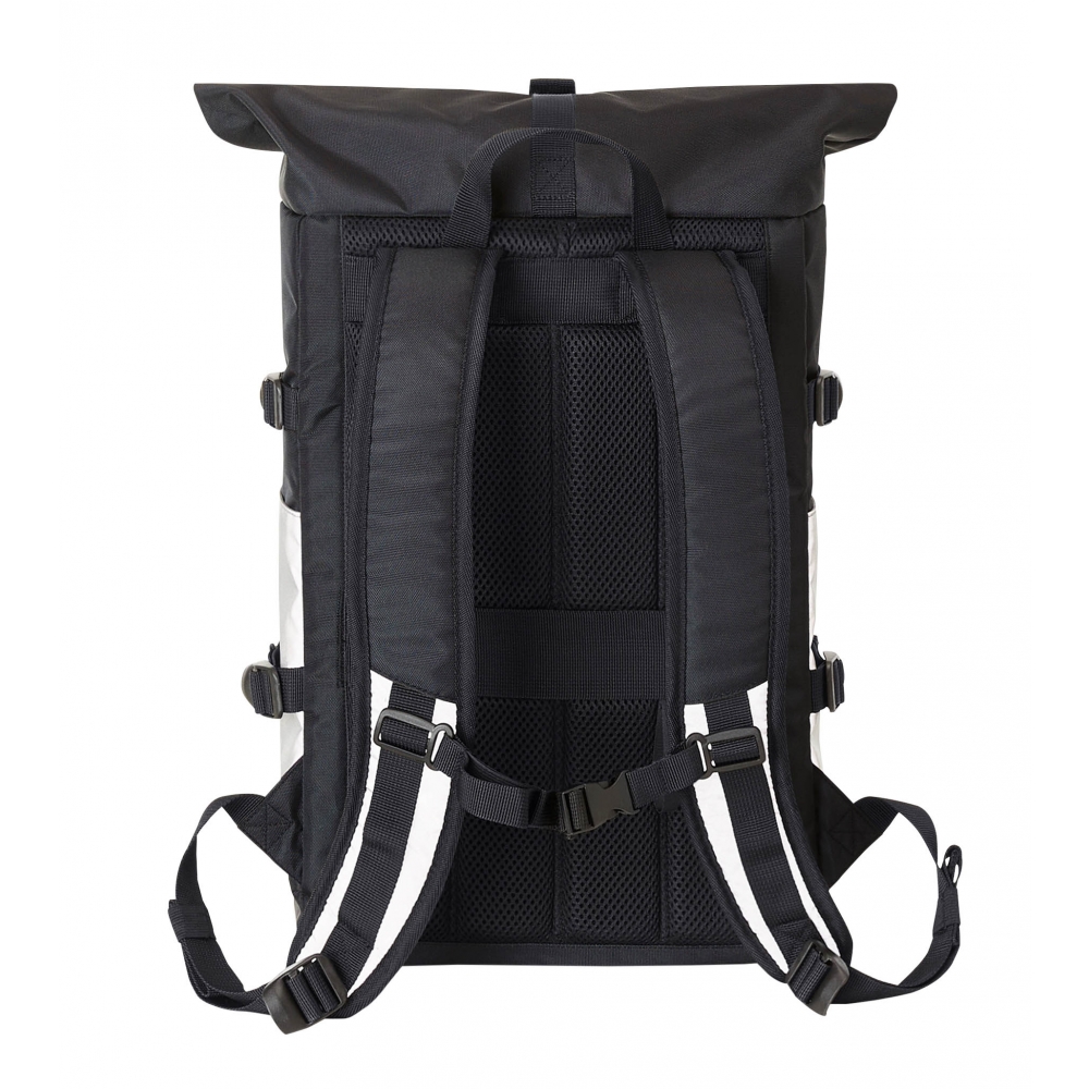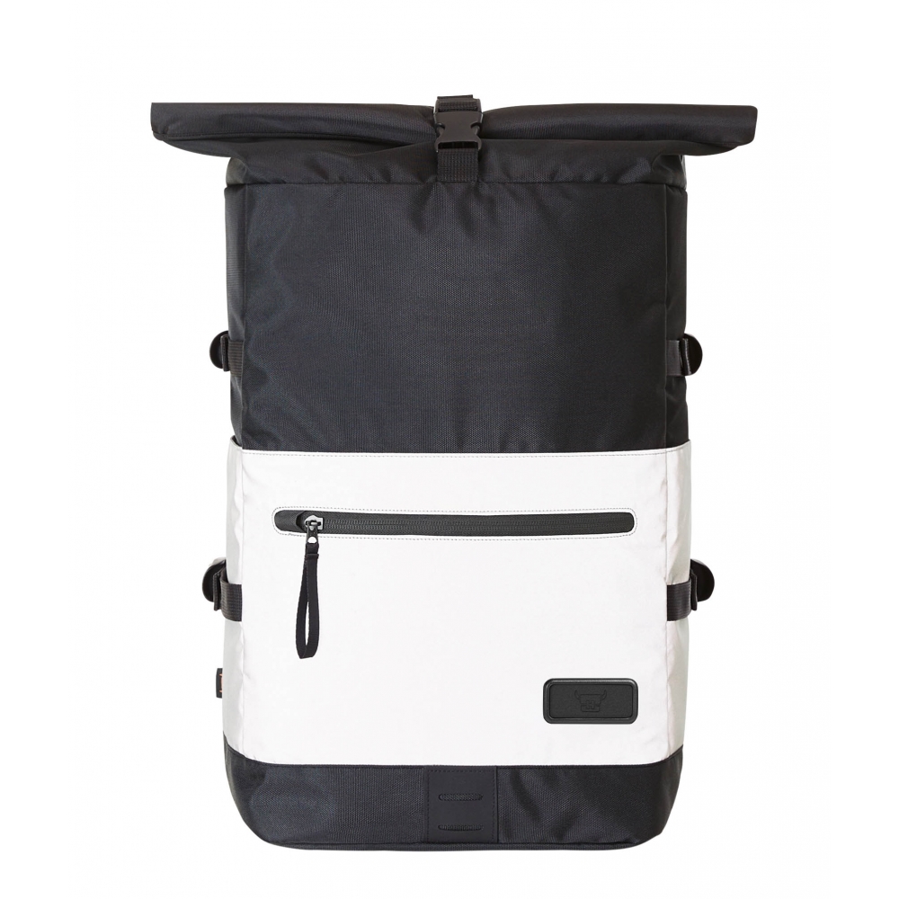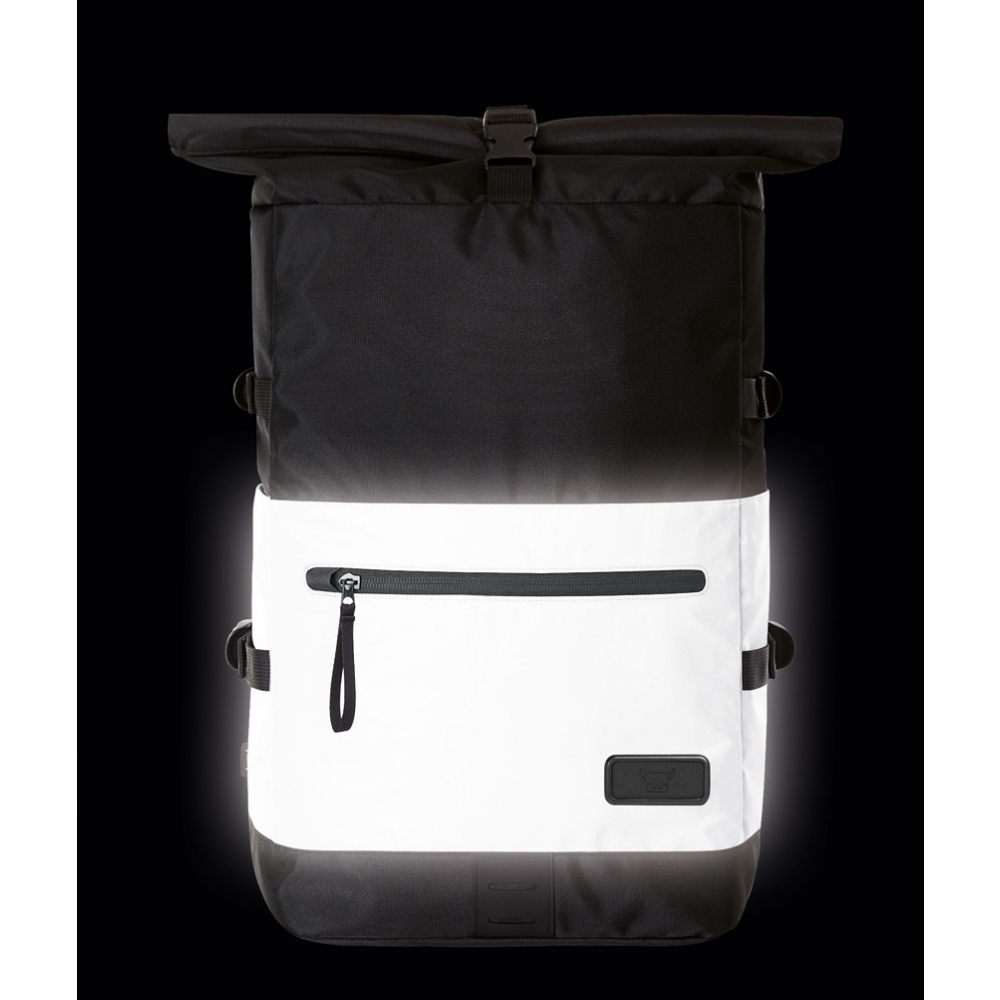 Artikel-Nr: HLF1818018-1Stylisher, reflektierender Rolltop-Rucksack mit Reißverschluss-Hauptfach und Steckverschluss; HFL®-Träger für Ihr Logo; gepolstertes Einsteckfach und Reißverschluss-Netzfach innen; zwei seitliche Einsteckfächer; Fixiergurte; Reißverschluss-Vortasche; LED-Fahrradlicht-Befestigungsmöglichkeit; rückseitige Befestigungsschlaufe für Trolley-Gestänge; verstecktes Reißverschluss-Fach; gepolstertes Tragesystem mit höhenverstellbarem Brustgurt; Handgriff
