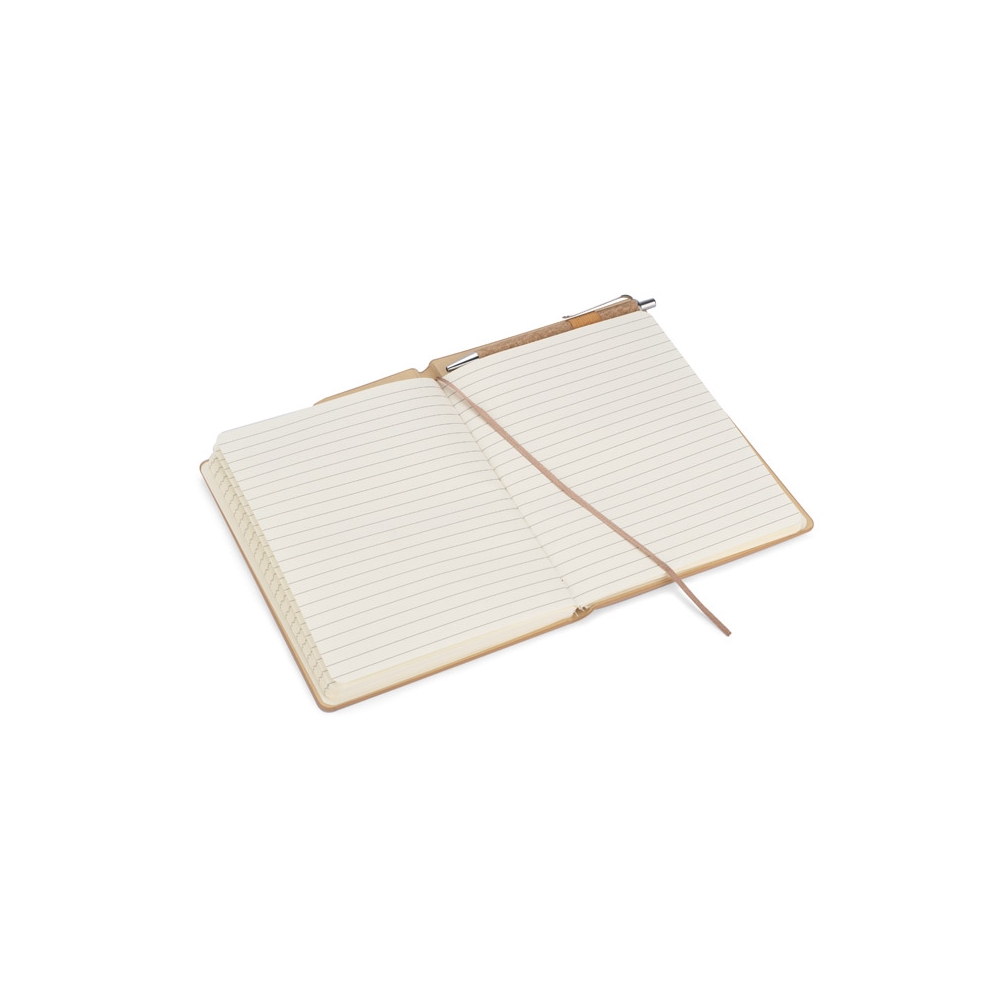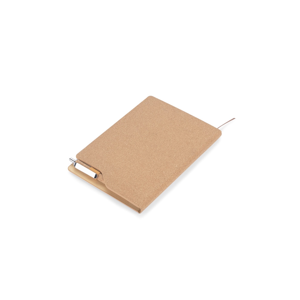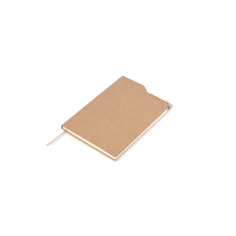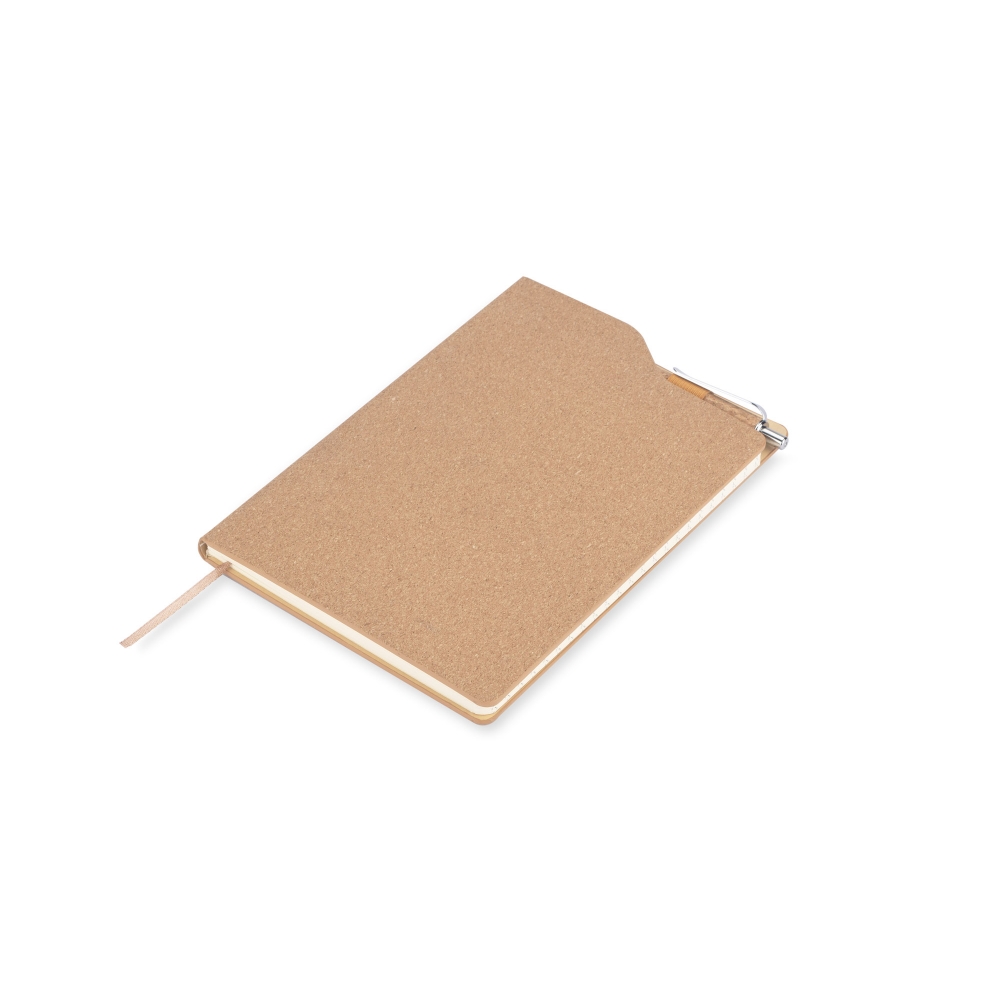 Artikel-Nr: ARD18009-17TESSO-Notizbuch in einem ökologischen Einband aus Naturkork. Das Notizbuch wird mit einem Stift mit blauer Mine geliefert. Auch der Körper des Stiftes besteht aus Kork, wodurch ein stimmiges Ganzes entsteht. Es wird an einer speziell profilierten Stelle platziert. A5-Notizbuchformat, 70 linierte Blätter.