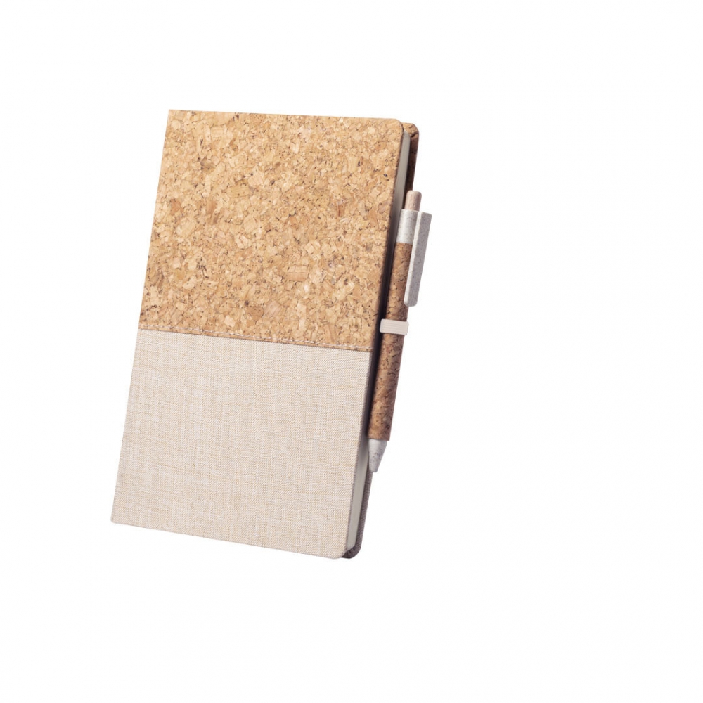 Artikel-Nr: KTO16394013000Notizblock mit Kugelschreiber aus unserer Naturlinie. Notizbuch mit festem Einband aus Naturkork und Baumwolle, mit Kugelschreiberhalter und 80 einfachen Blättern. Kugelschreiber mit Push-up-Mechanismus, mit Korkkörper aus Naturkork und Zubehör aus Weizenstroh, um die Verwendung natürlicher Rohstoffe zu fördern und die Schadstoffemissionen zu reduzieren. Schwarze Tinte.