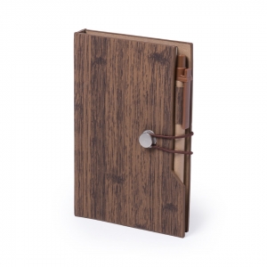 Artikel-Nr: KTO15991018000Notizblock mit originellem Kunstleder-Cover mit Holzmaserung in einer Vielzahl von Farben. Kugelschreiber aus recyceltem Karton inklusive. Ökologisches Design mit Soft-Touch-Cover und Gummibandverschluss. Mit integriertem Stifthalter, Block mit 70 linierten Blättern sowie 25 mittelgroßen und 125 Mini-Haftnotizen.