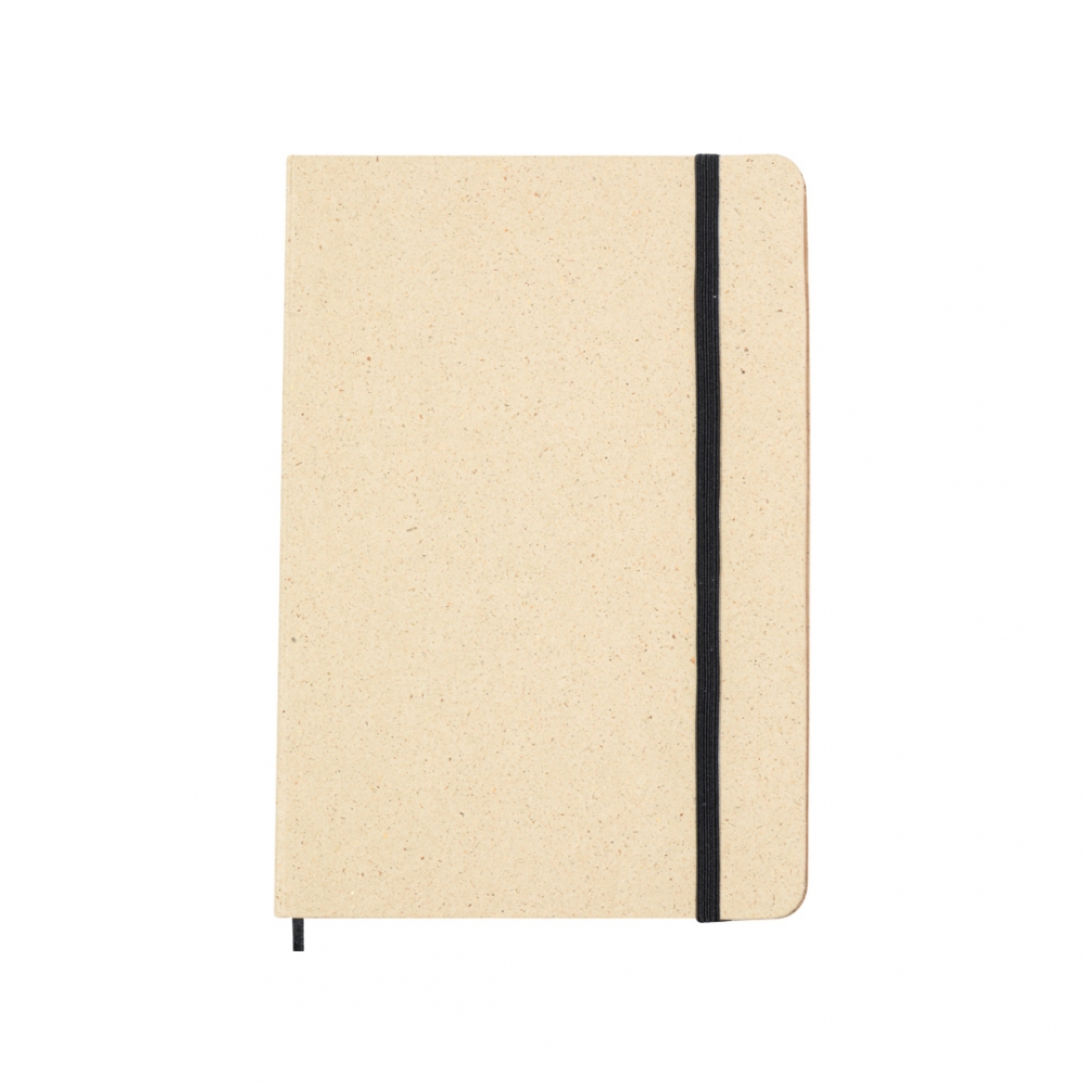 Artikel-Nr: KTO20943000000A5 Notizblock mit festem Einband aus recyceltem Gras. 80 linierte Seiten mit kraftvoller Oberfläche, mit Lesezeichen und Gummiband in Schwarz. Graspapier-Logo auf Vorder- und Rückseite und in einer individuellen Tasche. Graspapier ist eine perfekte Alternative, die Nachhaltigkeit während des Herstellungsprozesses garantiert und die Umweltauswirkungen aufgrund des schnellen Wachstums und des geringen Bedarfs an Ressourcen für den Anbau reduziert. Darüber hinaus werden 50 % Papier auf Grasbasis mit anderen umweltfreundlichen Elementen wie recyceltem Holz kombiniert.