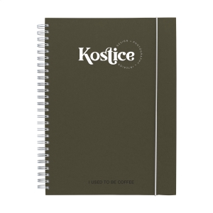 Artikel-Nr: CLPW12598WoW! Notizbuch im A5-Format. Mit 100 Blatt/200 Seiten liniertem Papier (80 g / m²), einer stabilen Wire-O-Bindung und einem Verschlussgummi. Der Hardcover-Einband besteht zu 15% aus landwirtschaftlichen und organischen Abfällen, z. B. von Tomaten, Paprika, Pflanzen und Zwiebeln. Diese Abfälle werden mit Recyclingpapier aus Europa gemischt. Ein praktisches Notizbuch, um Ideen zu notieren und festzuhalten.